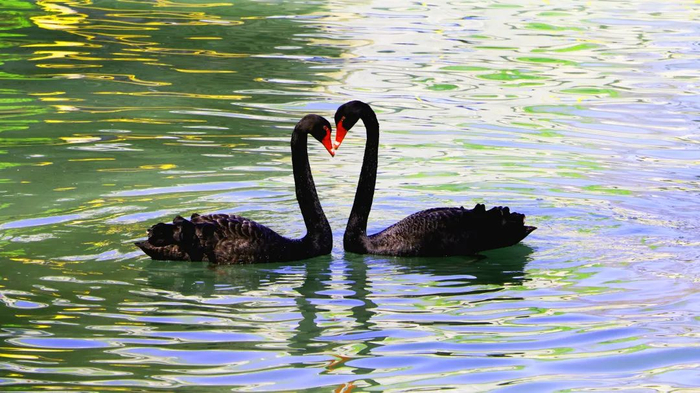 北湖畔悠闲游动的天鹅