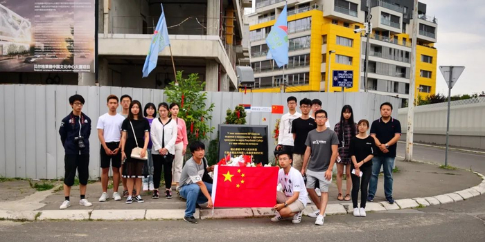 △同学和老师在中国驻前南斯拉夫联盟大使馆旧址前默哀