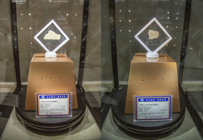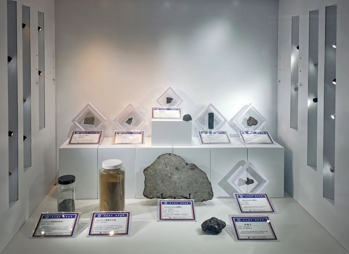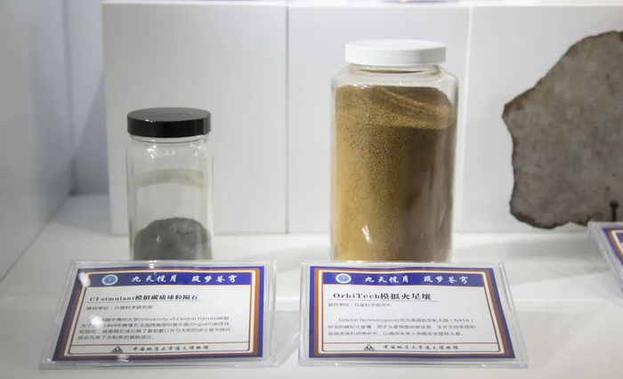 在肖龙教授及行星科学研究所的大力支持下,地大逸夫博物馆策划了此次展览,重点展示系列模拟月壤,同时陈列珍贵的月球陨石、火星陨石,揭示太阳系原始成分的奥尔盖碳质球粒陨石模拟样品、协助NASA勘探任务的Orbi Tech模拟火星壤、墨西哥奇瓦瓦州上空坠落的阿连德陨石、2018年6月降落在云南省西双版纳傣族自治州的曼桂陨石等,拉近公众和月球的距离。