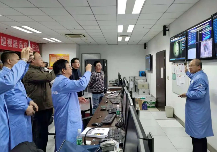 肖龙教授(前)在讲解嫦娥五号着陆区地质地貌(肖龙提供)