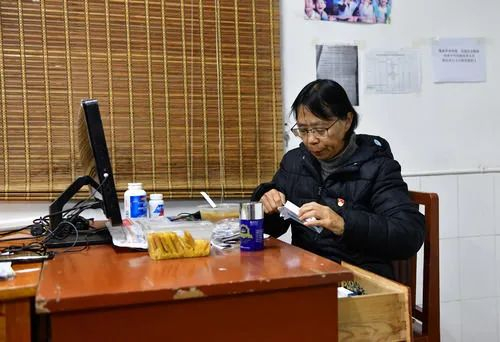 早上六点多,张桂梅在吃药(12月2日摄)。