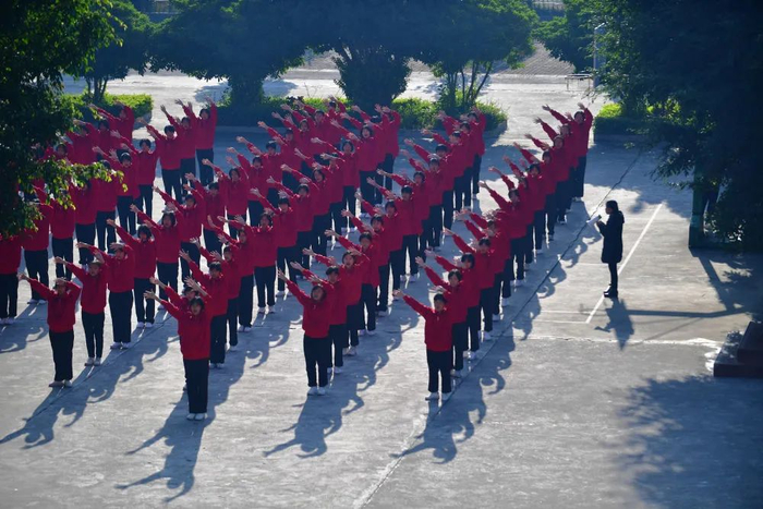 平日里,张桂梅喜欢看学生在课间操时排成方阵唱红歌、跳红舞。嘴里还经常念叨:“姑娘们长得多好啊,一个个吃得白白胖胖的。哼,等她们考上大学就得减肥了。”
