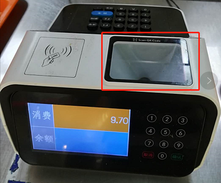 3. 在学校食堂、超市、书吧、咖啡吧等地的POS机处扫码,即可完成从校园一卡通账户付款
