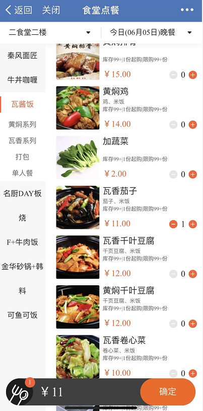 3. 支付:选择相关菜品点单,点击“去支付“,再次点击”确认“后,自动完成网上支付