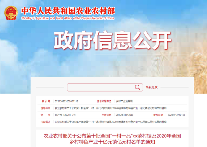 农业农村部公布了