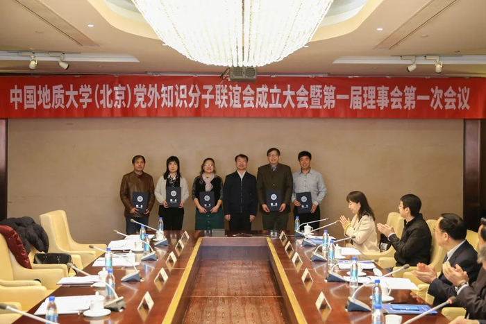 成立大会上,成秋明院士受聘为中国地质大学(北京)党外知识分子联谊会荣誉会长,马俊杰书记为成秋明院士颁发了荣誉会长聘书。