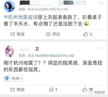 甚至有网友反馈说,杭州也有震感。
