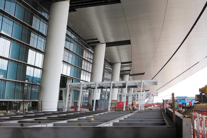 T1航站楼出发层外立面已具规模,主体结构、钢结构已完成100%