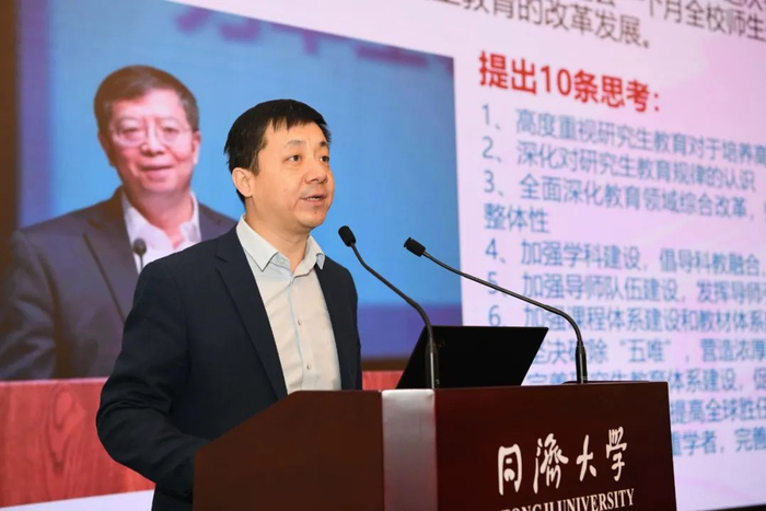 王平向教育部长期以来对同济大学以及上海研究生教育的支持表示衷心感谢。他表示,在教育部有力领导下,在各方共同努力下,同济大学研究生教育取得了丰硕成果,优势学科和基础研究的溢出效应进一步显现,培养了一大批创新拔尖人才,有力支撑国家战略需求和区域经济社会发展。他对同济大学研究生教育,同时也是对上海高校研究生教育提出了三点想法:一是进一步发扬“与祖国同行、以科教济世”的优良传统;二是进一步聚焦国家战略和区域经济发展急需;三是进一步在研究生教育改革中形成示范引领。