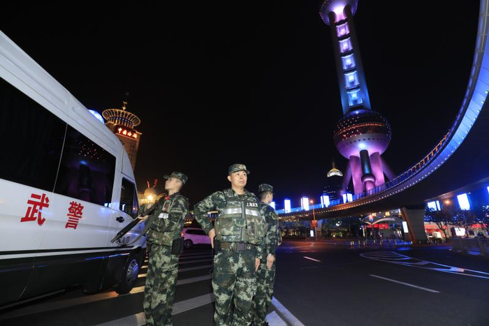 华灯初上,陆家嘴灯光璀璨,在行人如织的各个街区,一辆辆武警巡逻车来回穿梭,带队巡逻的十八中队指导员李奎用警惕的目光扫视周围,捕捉随时可能出现的突发情况。无论白天还是黑夜,寒冬还是酷暑,数百名官兵坚守在浦东各个执勤岗位上。