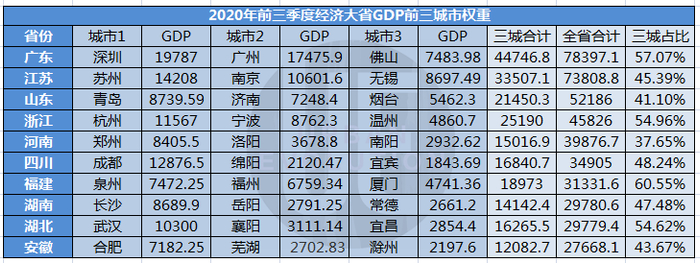 从经济前三强城市占全省GDP比重来看,湖南的差距仍然明显——湖南三城占比47.48%,远低于福建的60.55%、湖北的54.62%等。