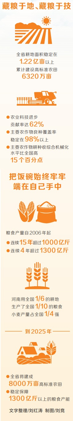 仓廪实,天下安。粮食安全是国家安全的重要基础,解决好吃饭问题是治国理政的头等大事。作为全国农业大省、粮食生产大省,我省粮食产量自2006年起连续15年超过1000亿斤,连续4年超过1300亿斤,为扛稳国家粮食安全重任作出了“河南贡献”。