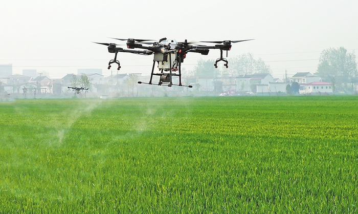 图②上蔡县黄埠镇南王楼村无人机为高标准农田喷洒农药。