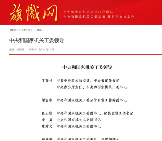 据中央和国家机关党建门户网站旗帜网“中央和国家机关工委领导”栏目12月14日更新信息显示,任正晓已出任中央和国家机关工委副书记、纪检监察工委书记。