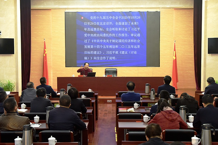 张建君教授从全会的伟大意义、决胜小康社会的决定性成就、我国发展环境面临的深刻复杂变化、2035年的远景目标、“十四五”时期的指导思想、“十四五”时期必须遵循的原则、“十四五”时期的主要目标、具体工作举措等八个方面,对全会精神作了生动细致的阐释。