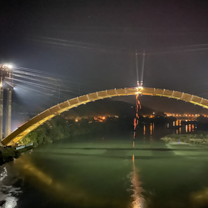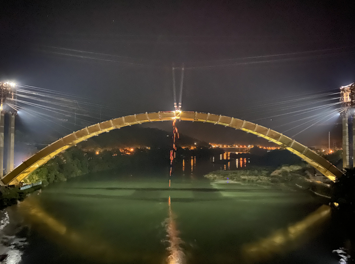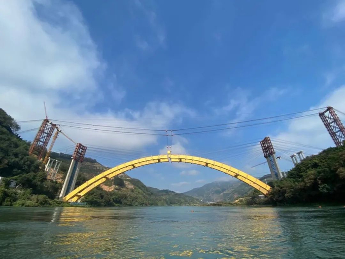 澜沧江特大桥,位于西双版纳傣族自治州景洪市至勐海县高速公路k7+795处,为跨越澜沧江所设,是景海高速整条路线的控制性工程。大桥于2018年5月进场施工,桥梁全长523米,建成后将成为国内第一大跨径上承式钢箱拱桥。