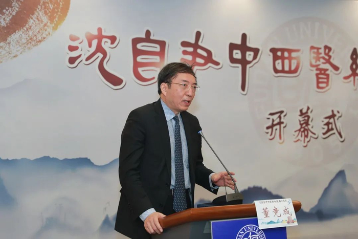 焦扬在致辞中指出,沈自尹先生一生赤诚、矢志为国,青年时期就接受革命进步思想,把党的需求作为一生追求,脱产学习中医,在中西医结合临床、科研、教学第一线奋斗了一辈子;开拓创新、贡献卓著,为传统中医引入现代注解,开拓出全新学科门类,为阐明中医理论的科学内涵、扩大中医药治疗成果作出了卓越贡献;悬壶济世、妙手仁心, 89岁高龄仍坚持坐诊,亲自研制并无偿转让的“急支糖浆”等中药新药享誉海内外、造福人民;教书育人、桃李丰硕,为国家培养出第一个中西医结合博士及一批批学贯中西的医学人才,带领复旦中西医结合学科成为国内重要基地。