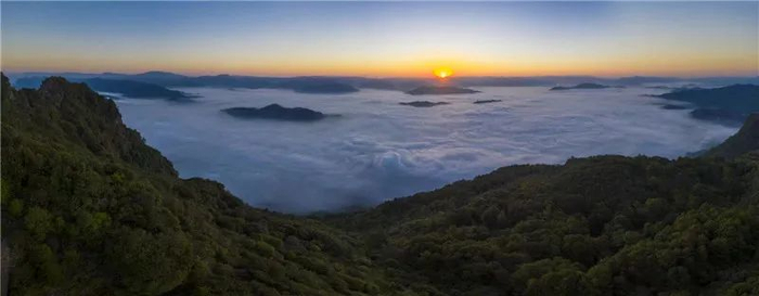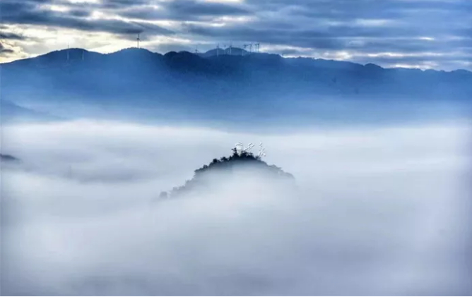 云腾雾荡、云飘雾绕、云来雾去,只见那一层层云雾翻来覆去,上下沉浮,左右不定,东飘西荡。一会儿大雾升腾,将山头全淹没了,一会儿大雾退去,又露出一个又一个山头,像大海的潮涨潮落,变幻莫测,好不壮观,让人惊叹,使人遐想。