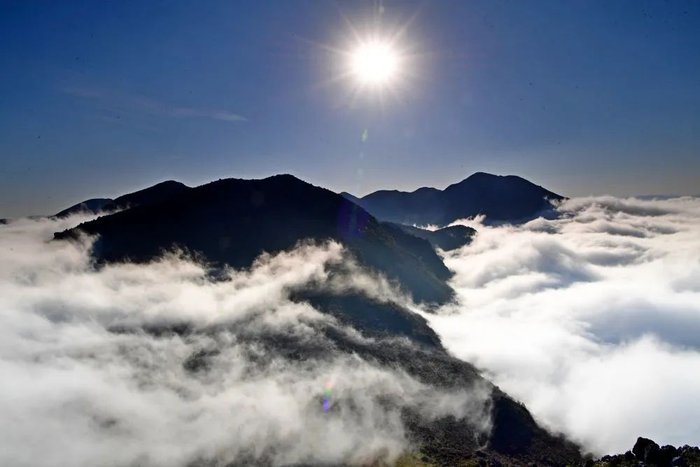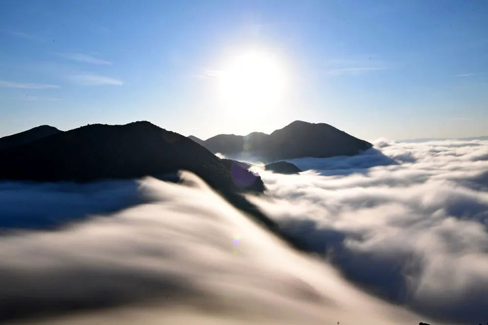 曲靖市罗平县白腊山的壮美云海,站在山顶望去,山下腾起缕缕云雾,如烟似海。罗平水源丰富,空气湿润,秋冬季节天气晴好时,常常会出现壮观的云海。