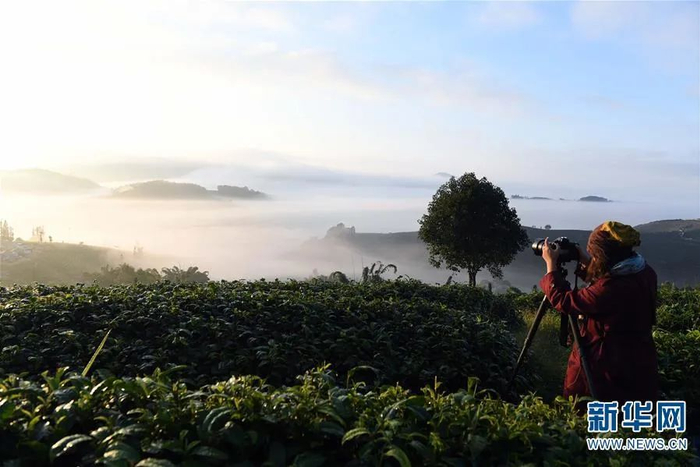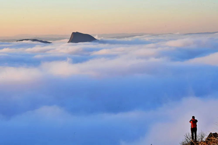 一名户外运动爱好者在拍摄壮观的云海。(12月13日摄)
