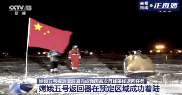 今天(12月17日)1时59分,嫦娥五号返回器携带月球样品在内蒙古四子王旗预定区域安全着陆,探月工程嫦娥五号任务取得我国航天史上的多个重大突破后,圆满成功。这标志着我国探月工程“绕、落、回”三步走规划如期完成。