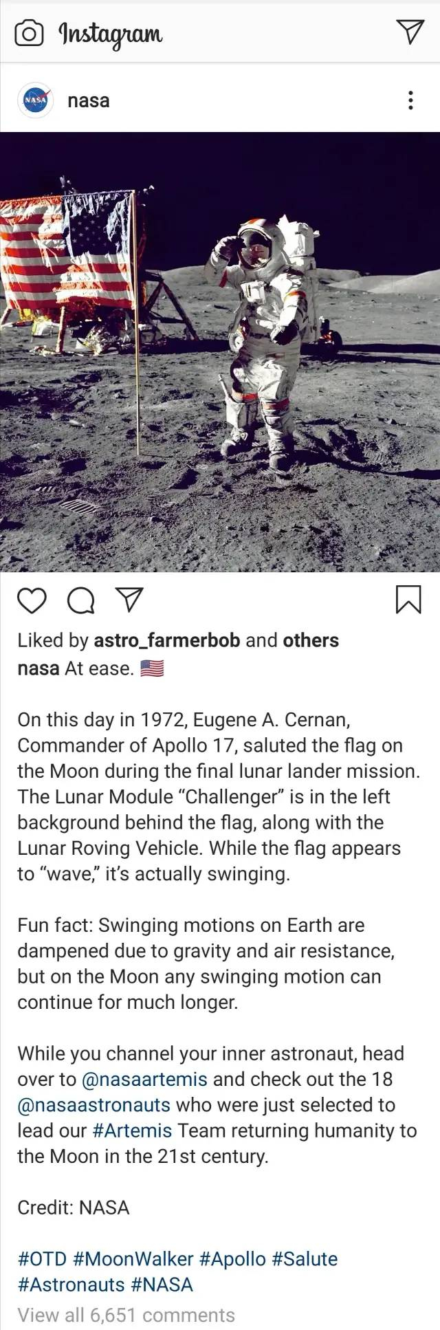 当然,真相是否如此,谁也不知道。不过,针对美国网友“Do it again”的要求,NASA倒的确有些新动作。今年2月,NASA宣布,将为新登月计划“阿耳忒弥斯”招收第二批宇航员。“阿耳忒弥斯”是美国制定的重返月球计划,预定2024年送2名宇航员登陆月球,其中包括1名女性宇航员。