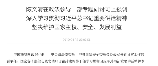 新华社报道称,在政治局集体学习后,国家安全部党委书记、部长陈文清主持召开了部党委会议。