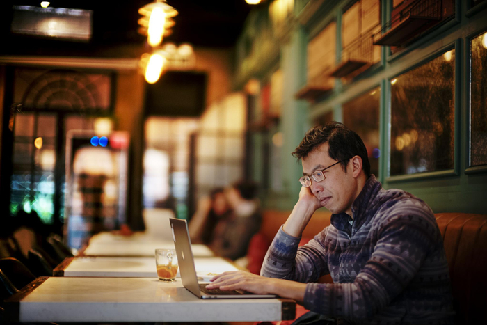 与他洋洋洒洒的文章不同,43岁的廖信忠话不多,声音很轻,加之咖啡馆背景音乐及邻座红衣红裤红鞋大叔的电话声,有时我需要身子前仰才能听清。但他又有高配合度,愿意满足我们摄影记者的种种要求。