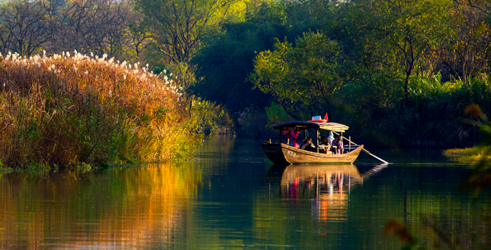 西溪湿地面积约11.5平方公里,其间水道如巷、河汊如网,蜿蜒曲折、碧波荡漾,牵连着鳞次栉比的鱼塘。