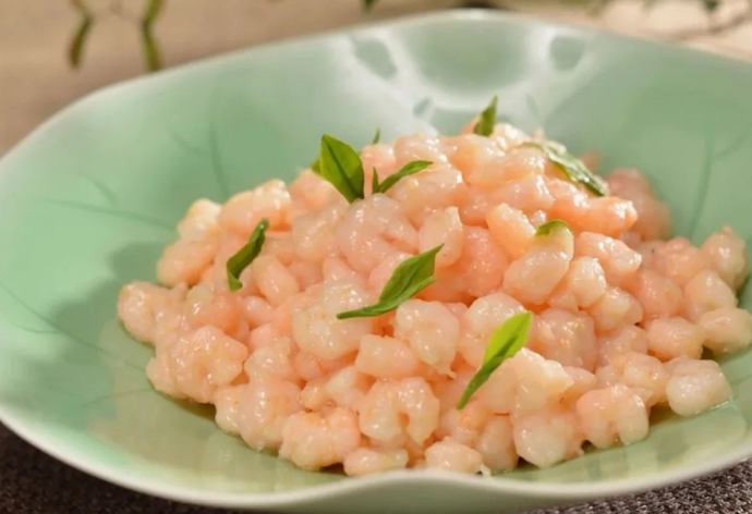 龙井茶是我国十大名茶之一。龙井虾仁选用鲜活大河虾,配以清明前后的龙井新茶烹制,取料讲究,清鲜味美。