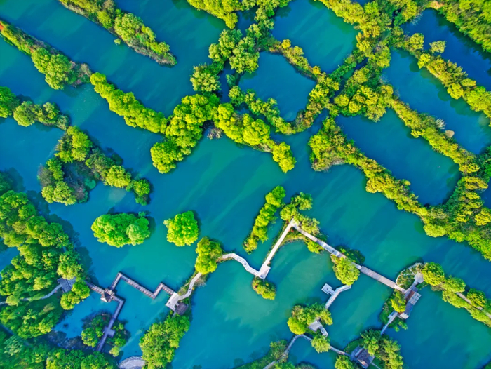 西湖风光闻名天下,西溪湿地富有野趣,京杭大运河纵贯南北,钱塘江穿城而过,千岛湖烟波浩渺,天目山古木葱茏,山水相依、湖城合璧、拥江而立的独特风貌,使杭州成为“真山真水园中城”的典范。