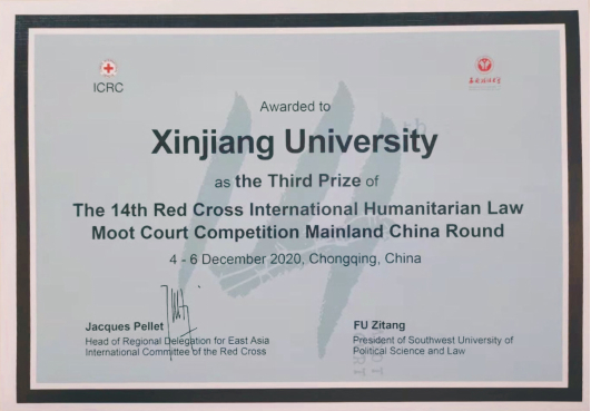 【新大新闻】我校代表队在第14届中国大陆地区红十字国际人道法模拟法庭大赛中喜获佳绩