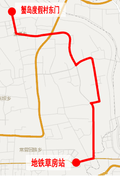 调整后首末站:蟹岛度假村东门-地铁草房站
