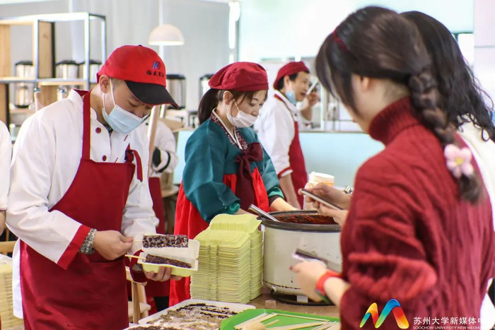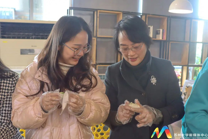 时值冬至节,苏州大学传媒学院联合学校后勤管理处,举办了“感受传统文化,传承苏州味道”2020冬至文化寻味活动。活动中,师生们在糕点师傅的指导下参与了冬至盘糕点制作,边品尝冬至盘糕点,边畅聊吴地冬至文化。