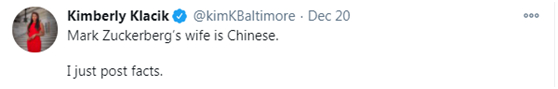 美国女政客发推说扎克伯格、麦康奈尔妻子都是华裔,而“病毒来自中国”,网友怒怼