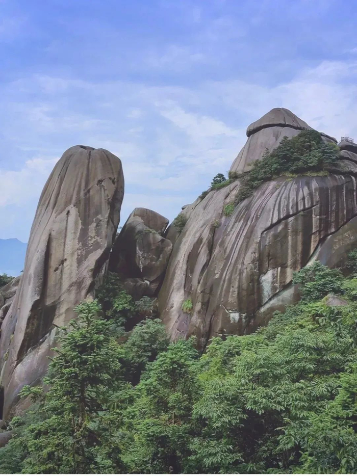浮盖山,因主峰峰顶盘石垒叠,下者如盘,上者如盖,故名“浮盖山”,仙霞古道穿山而过,怪石堆叠成不计其数的怪洞。
