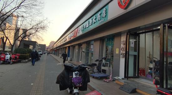 大山子北里社区东门外有一排商铺。除个别几家处于关门状态外,其余大部分商家都在开门迎客。