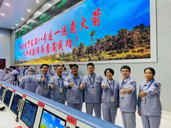 发射成功后,西安航天动力研究所长征八号试验队员合影,右四为西工大博士生王春民