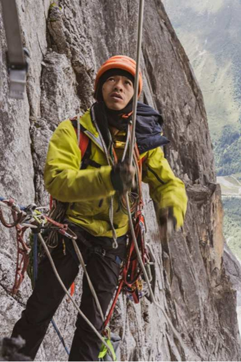 2017年8月,他再次发起进攻,经过几天的攀登,只剩下三段绳距,所有的难点都已经通过,顶峰几乎近在咫尺!就在这时,一个保护点失效脱落,何川直接冲坠了七八米,胫骨骨折,于是,这年的攀登以一场“无以言表”的艰难下撤而告终