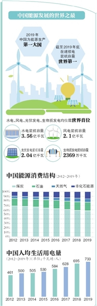 其中,清洁能源占能源消费总量比重达到23.4%,比2012年提高8.9个百分点。建立了完备的水电、核电、风电、太阳能发电等清洁能源装备制造产业链,有力支撑清洁能源开发利用。能源的绿色发展对碳排放强度下降起到了重要作用,中国2019年碳排放强度比2005年降低48.1%,提前实现了2015年提出的碳排放强度下降40%-45%的目标。