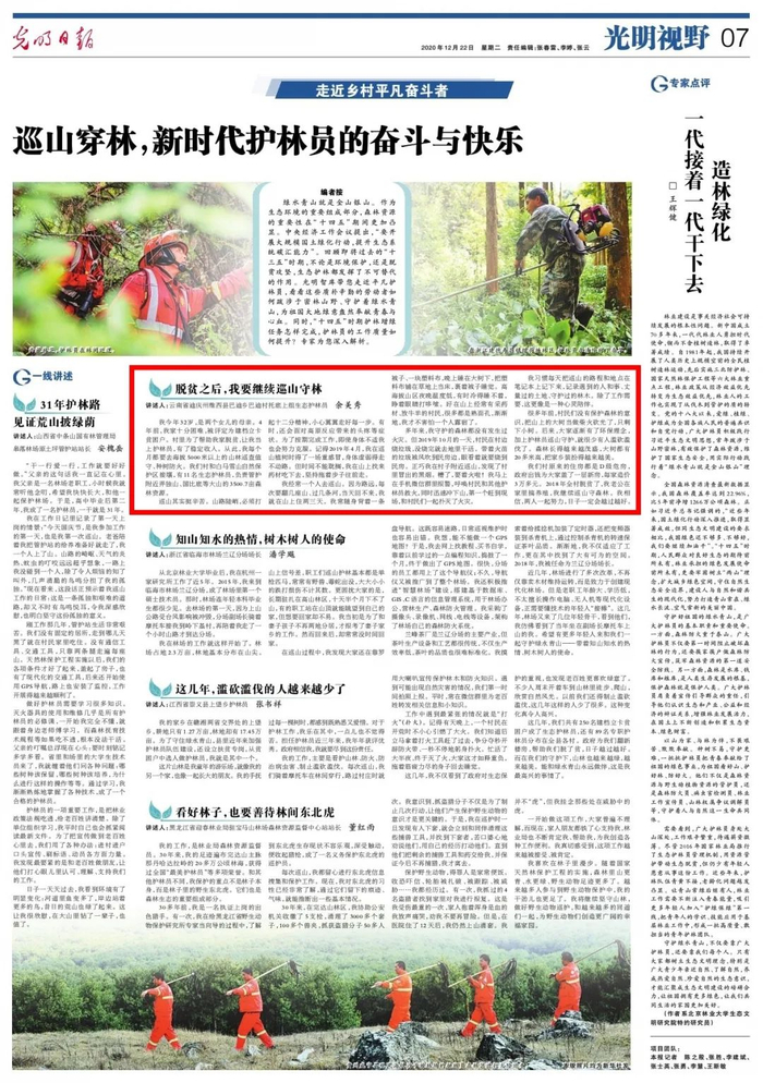 《光明日报》聚焦新时代护林员的奋斗与快乐,迪庆州护林员余美秀的故事成鲜活案例