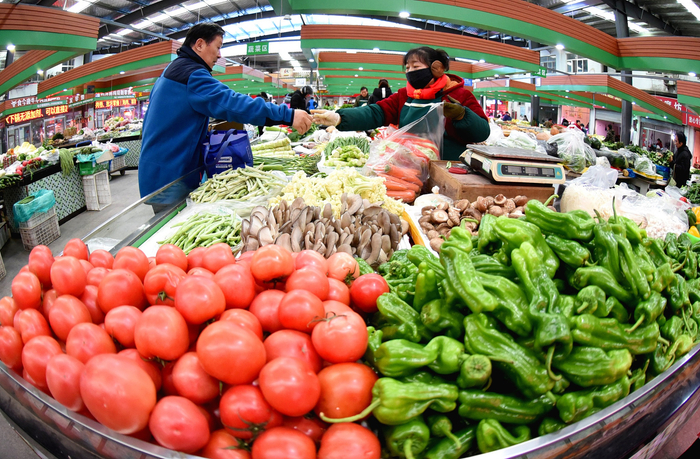 2020年12月9日,居民在江苏连云港市海州区一家农贸市场选购蔬菜。视觉中国