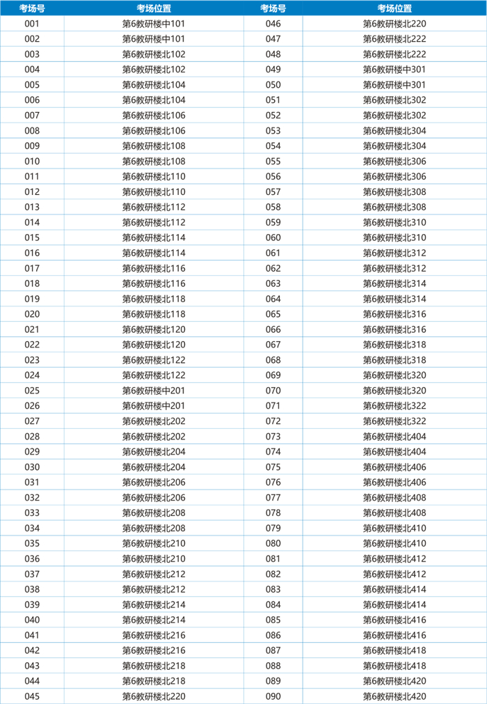 12月26、27日考场安排在杭州电子科技大学下沙校区第6教学科研楼(信诚楼),考试期间第6教学科研楼(信诚楼)全楼封闭,仅留6教东门出入。
