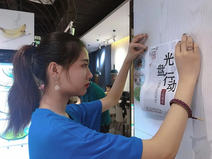 倡导厉行节约,反对铺张浪费,带动大家珍惜粮食、吃光盘子中的食物。