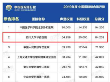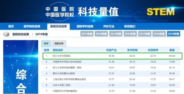 连续七年第一!华西医院、华西口腔医院蝉联中国医院科技量值综合榜和口腔医学专科榜单榜首。