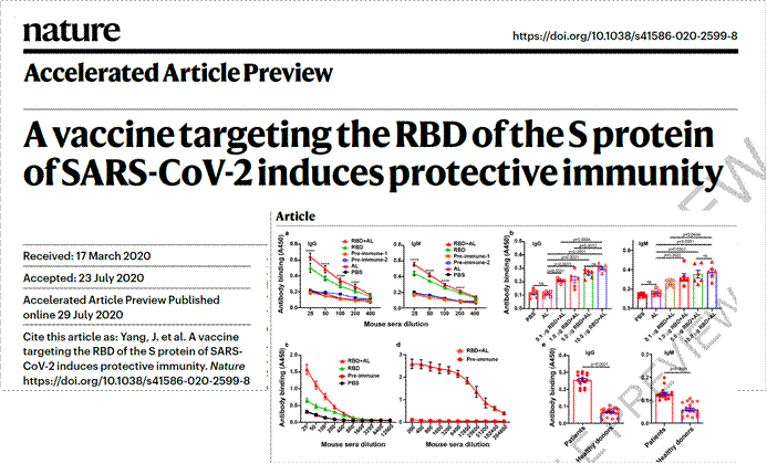 新冠病毒重组蛋白疫苗相关研究成果在《Nature》在线发表