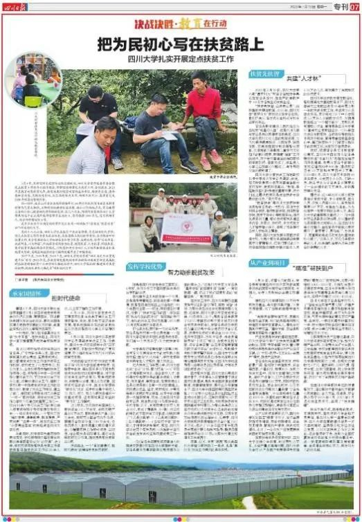 为打赢脱贫攻坚收官战作出川大贡献。学校精准帮扶的甘洛县格布村被评选为“凉山州集体经济发展示范村”,我校获评“四川省脱贫攻坚奖先进集体”。
