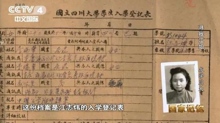 央视《国家记忆》栏目在烈士纪念日期间播出了《寻找江姐——求学川大》党史人物专题片