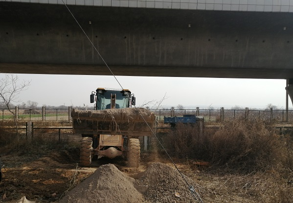 闻喜县郭家庄镇东韩村大西高铁桥梁栏杆外侧5米处的抽水井现场(整改中)