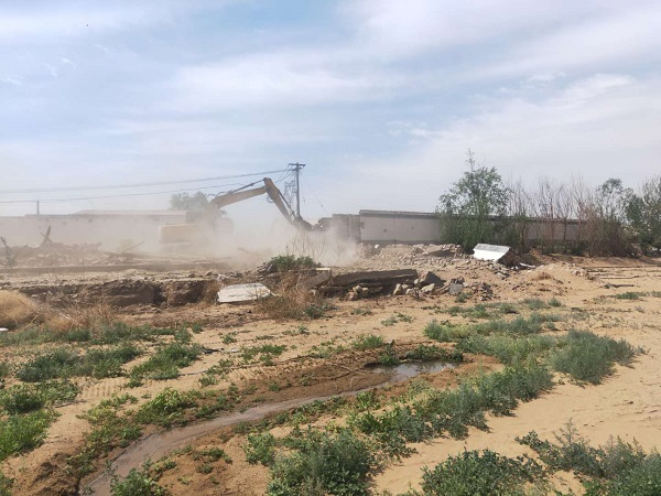 2019年10月8日,海勃湾区政府向检察机关回函称已完成对河道的治理工作,对于当地村民在河道内违规种植农作物的行为,已下达整改通知书,限期清除了河道内种植的高杆农作物,恢复河道原状,平整上游河道。检察机关跟进监督发现,涉案的其他五座泄洪桥上下游河道整改恢复情况良好,但K368+231泄洪桥处鲁某某违建占据河道的情形仍然存在。